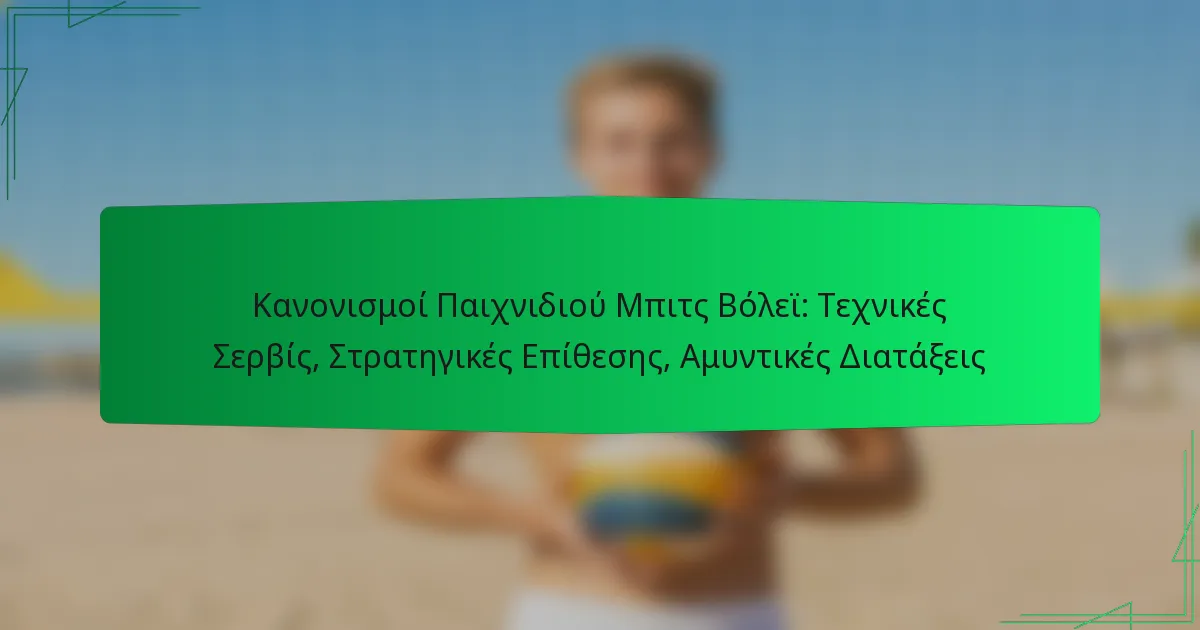 Το παιχνίδι του beach volleyball διέπεται από συγκεκριμένους κανονισμούς που καθορίζουν διάφορες πτυχές του παιχνιδιού, συμπεριλαμβανομένων των τεχνικών σερβιρίσματος και των ρόλων των παικτών. Η εκμάθηση των τεχνικών σερβιρίσματος και η εφαρμογή αποτελεσματικών στρατηγικών επίθεσης είναι κρίσιμη για την απόκτηση πλεονεκτήματος έναντι των αντιπάλων. Επιπλέον, η κατανόηση των αμυντικών σχηματισμών μπορεί να ενισχύσει σημαντικά την ικανότητα μιας ομάδας να ανταποκριθεί σε επιθέσεις και να διατηρήσει την ανταγωνιστική ακεραιότητα στο γήπεδο.